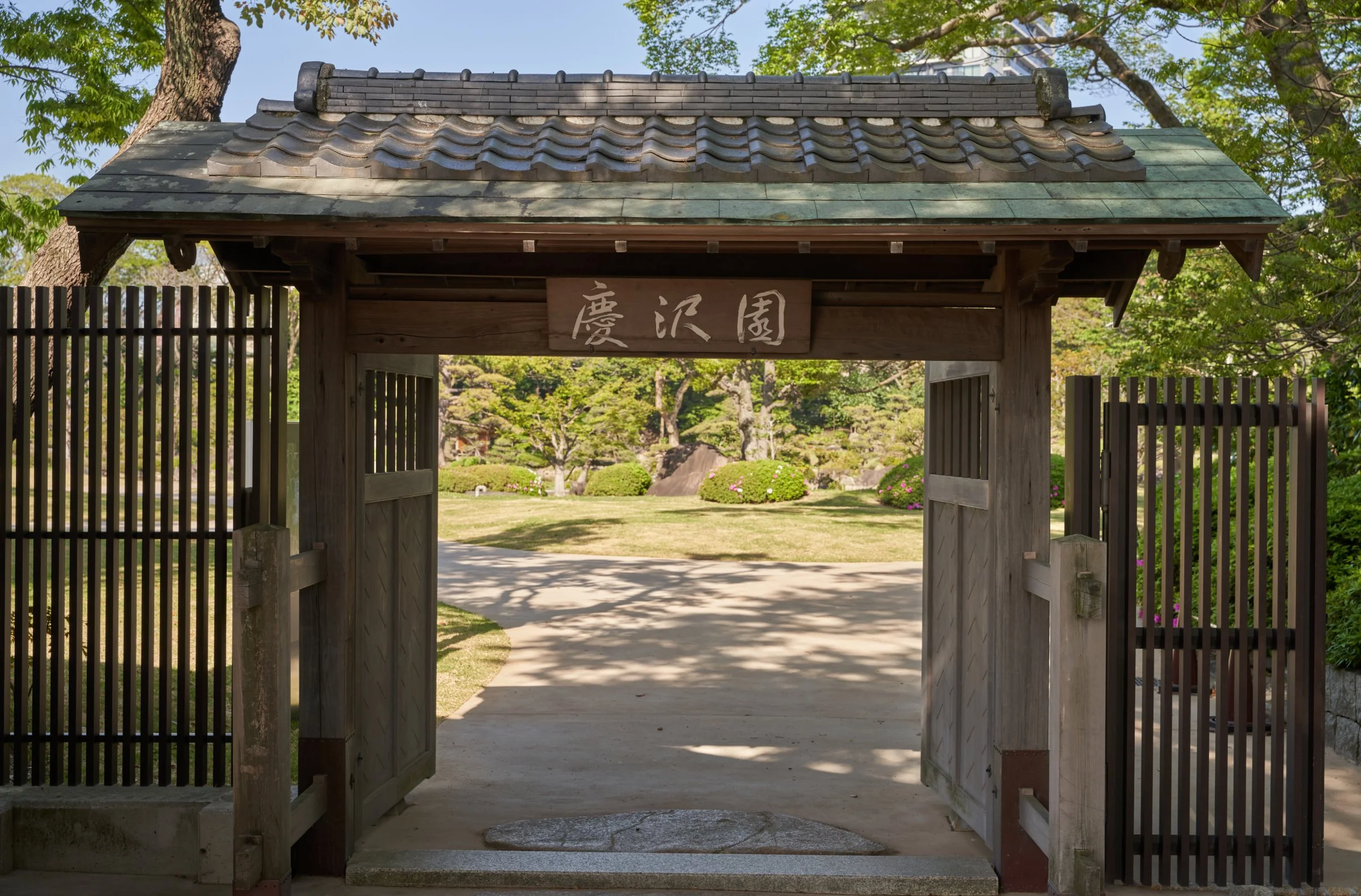 Keitakuen Garden is located in the lively Tennoji district, yet it leaves a lingering sense of peace, like a hidden retreat in the city. While Abeno Harukas looms in the distance, the garden surrounds you with greenery and water, offering a pleasant dissonance that soothes the mind.