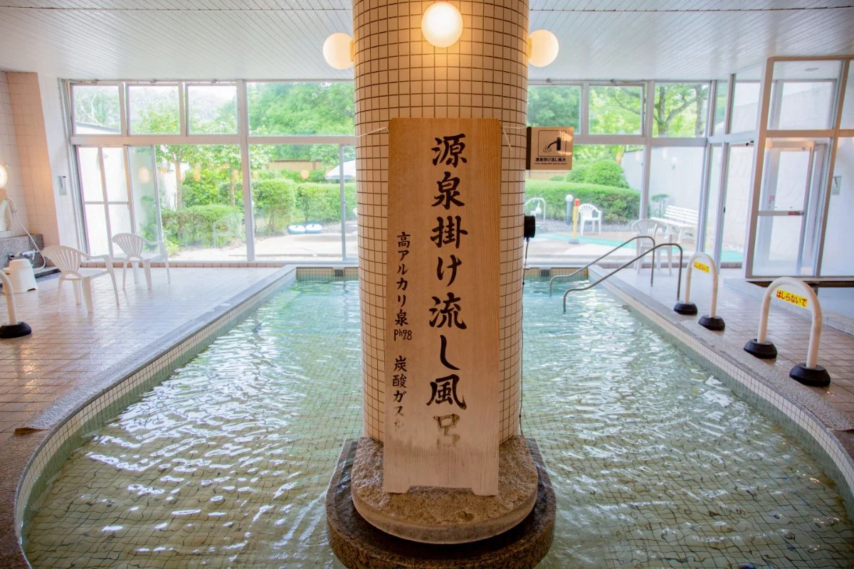 All pools at Akiyama Onsen use natural hot spring water, including a 25-meter lap pool, children’s pool, warm-up pool, and outdoor pool.