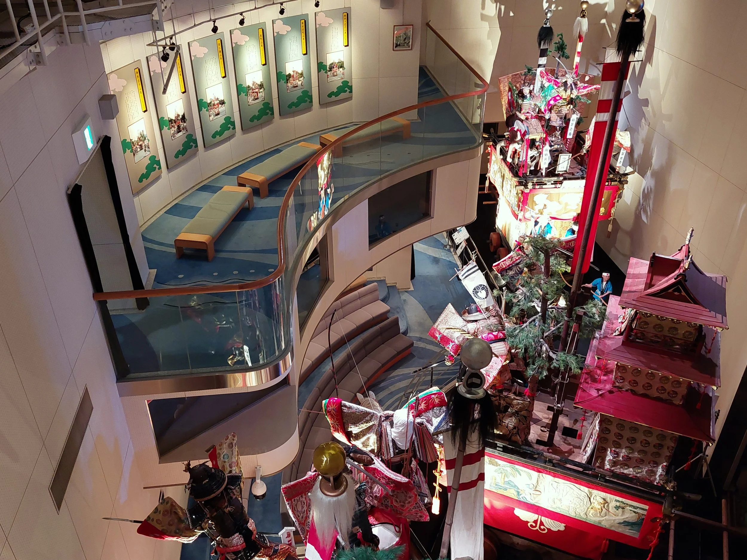 On the second floor, an array of traditional samurai armor is displayed—outfits worn by warrior figures that ride atop the floats. For fans of samurai history and craftsmanship, this section offers a rare, up-close look at battle regalia used in one of Japan’s most visually rich festivals.