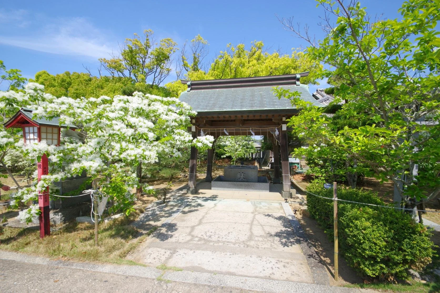 Okanominato Shrine is dedicated to deities such as Ōkuranushi-no-Mikoto and Tsuburahime-no-Mikoto, revered for their protective and benevolent qualities. The shrine's grounds are adorned with cultural assets, including a pair of stone lanterns donated by merchants from Ashiya and Imari, symbolizing the town's historical role as a significant maritime hub. The shrine's plaque, inscribed by Princess Kitashirakawa, adds to its historical allure.